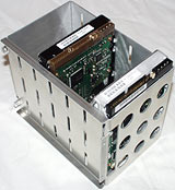removable 3.5 inch drive cradle held in place with three more thumbscrews,